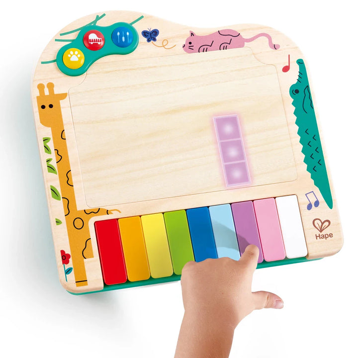 - التطور الحسي: حسّن مهاراتك الحركية الدقيقة وتنسيق حركة اليد والعين مع حركات الأصابع الصغيرة على مفاتيح البيانو المتجاوبة. كل ضغطة تُضفي متعة حسية، وتُعزز إدراكهم اللمسي.