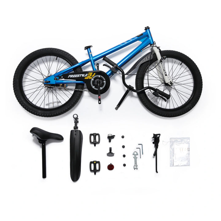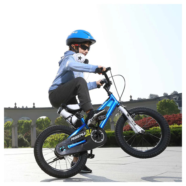 رويال بيبي فري ستايل ٢٠ بوصة - أزرق (للجنسين، ٨ سنوات فأكثر) مُجمّعة مسبقًا بنسبة ٩٥٪، ولا تتطلب سوى أربع خطوات لتركيب عجلات التدريب والدواسات والمقود والسرج. أدوات التركيب وتعليمات سهلة الاتباع مُرفقة. صُممت عجلات التدريب المثلثة الحاصلة على براءة اختراع، والمكونة من قطعة واحدة، لركوب أكثر أمانًا، وهي متينة وثابتة. يوفر فرامل الفرجار الأمامية وفرامل الكوستر الخلفية أمانًا مزدوجًا. تضمن الإطارات الهوائية العريضة ٢.٤ بوصة الراحة والثبات. يمنع واقي السلسلة الكامل تشابك الملابس، ويمنع مُحدد التوجيه الانعطافات الحادة. يتضمن المقعد مقبضًا لسهولة الحمل أو المساعدة أثناء التدريب.