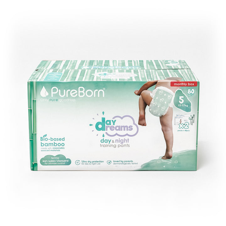 Pure Born's Pull Ups are carefully designed to take a baby comfortably into the next step of their lives as they grow. They have carefully been made to provide comfort and flexibility to your child as they go about their day with ease and without worry, providing up to 12 hours of dry protection.