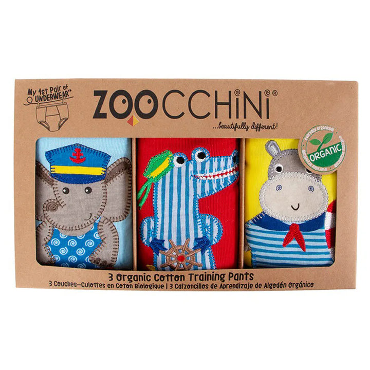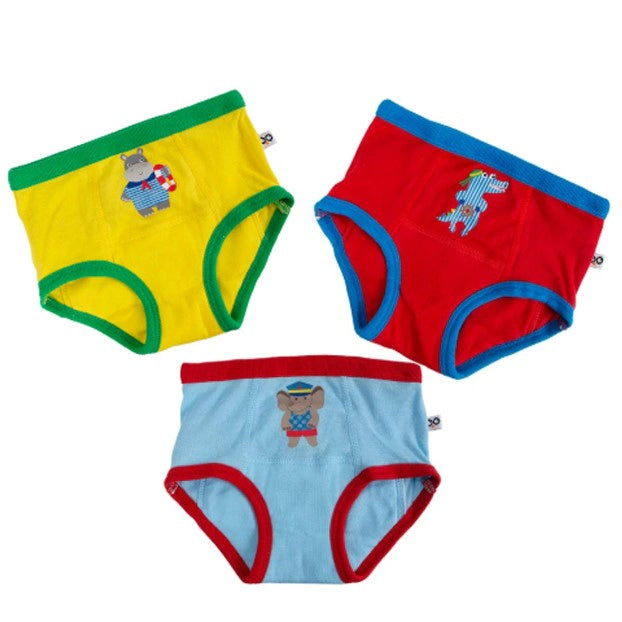 Good-bye diapers, hello "My First Pair of Underwear"! These ZOOCCHINI Organic Cotton Potty Training Pants are designed as the perfect transition between diapers and regular underwear. Made from super soft certified organic cotton spandex stretch rib, they provide comfort, durability, and extra absorbency where it’s needed most. With fun animal characters, bright colors, and playful details, potty training becomes easier and more enjoyable for your child.
