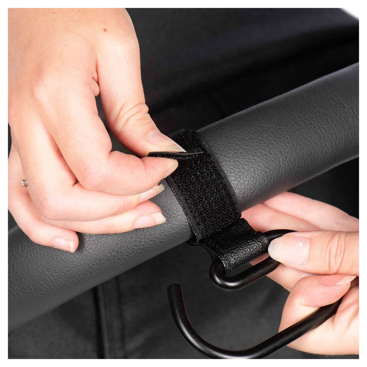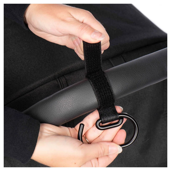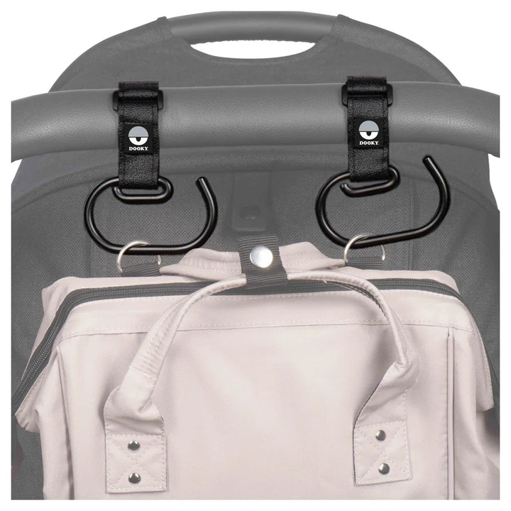 Simplify your outings with the Dooky Large Buggy Hook Pack. This hook pack includes a pair of versatile hooks designed to address your storage woes effortlessly. Fasten them to the push bar of your stroller or buggy using the convenient Velcro attachments. Whether it's your handbag, a nappy bag, a jacket, or a bundle of newfound purchases, these hooks transform into instant storage companions, keeping your hands free and your belongings within easy reach.