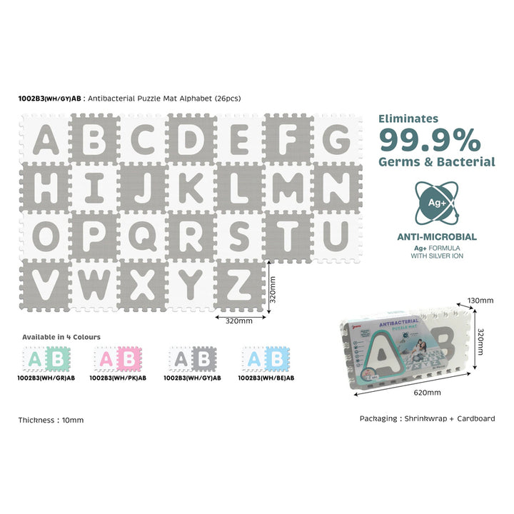 - Anti-Bacterial Puzzle Mat that contains anti-microbial Ag+ formula with Silver Ion that eliminates 99.99% germs.