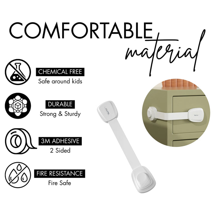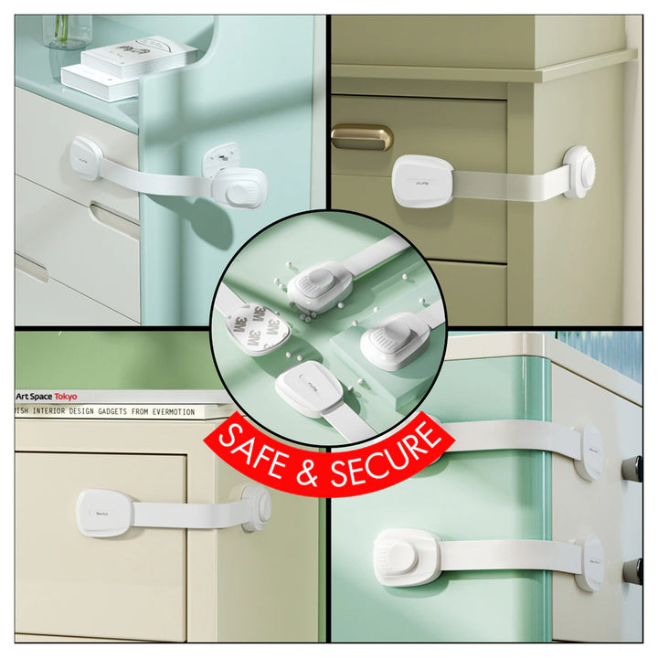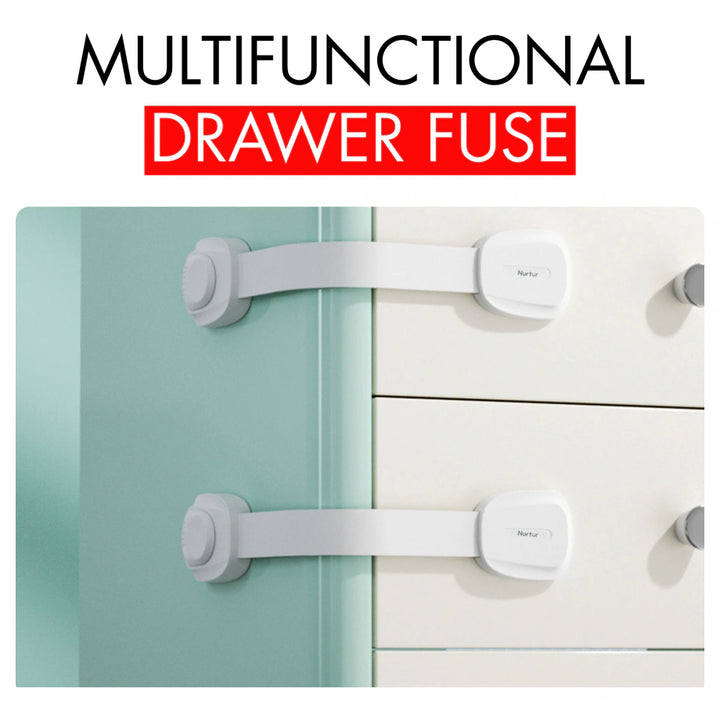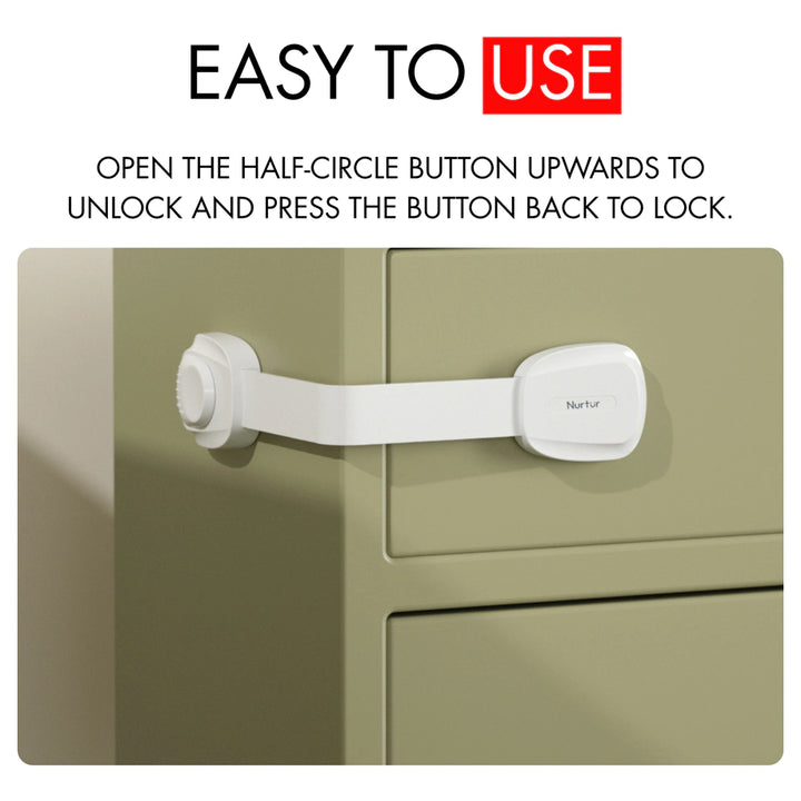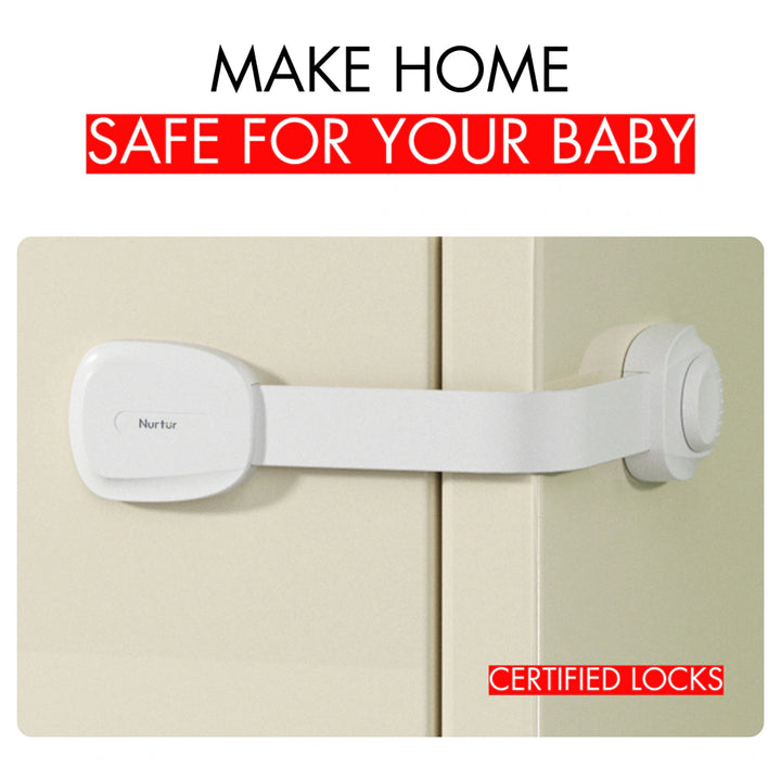 Ensure the safety of your little ones with the Nurtur Long Multipurpose Child Safety Locks. Designed with an extended 208 mm length, these locks securely protect wider appliances and furniture. Made from durable and transparent PC (Polycarbonate), they provide discreet safety while preventing children from opening fridges, ovens, and large cabinets. Easy to install with strong adhesive backing, no tools required. Suitable for babies 6 months and above.