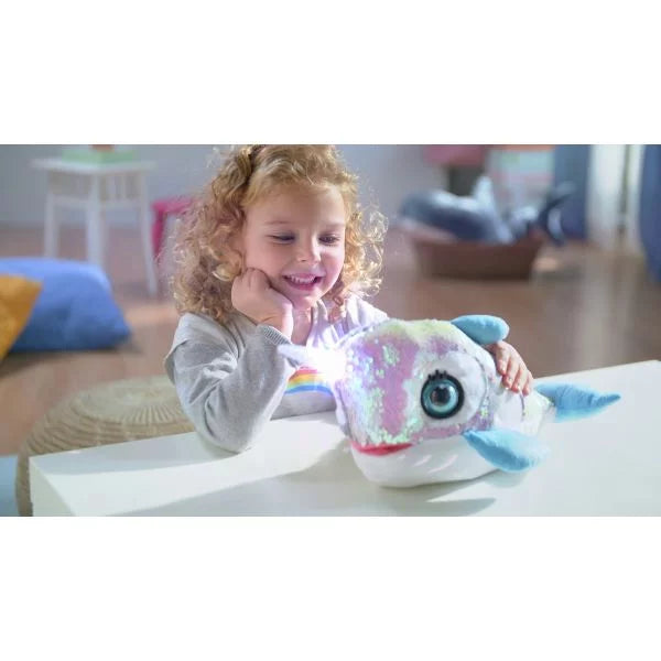 A gorgeous, glittering, soft whale that every child will love! When touched, its eyes flicker, mouth moves, and a soft light shines from its horn. The whale tells the story of The Little Mermaid, plays two classic songs, and speaks 15 sentences, creating magical moments for kids.