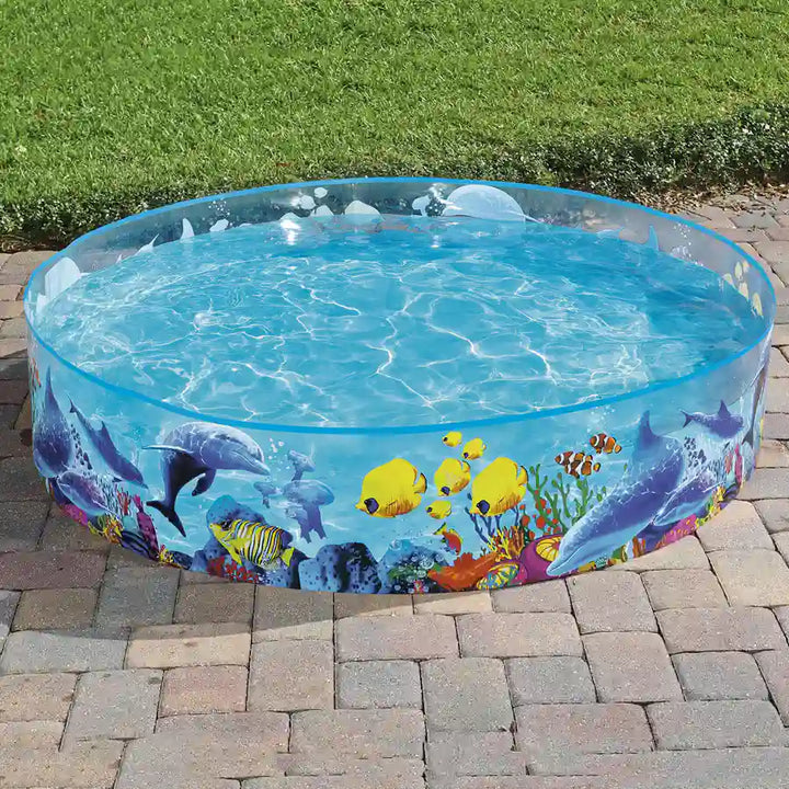 Perfect way to spend a hot summer day. This play pool is made of soft material and is inflatable. The design is carefree and cheerful, to set the right tone! Ideal for your kids to call their friends and have a joyous time. The pool is durable and safe for use.