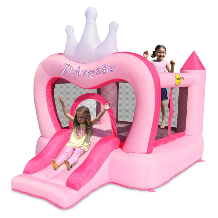 Happy Hop Princess Castle Bouncer brings magical fun to your little royals! Featuring a charming white crown design, this inflatable is perfect for up to 2 children and fits neatly in small backyards. Safe, fun, and easy to set up, it ensures hours of active play for your little princes and princesses.