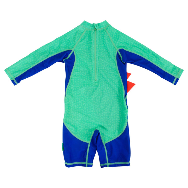 Surfs up! Our classic One-Piece Surf Suit features an adorable dinosaur design with a color-blocked all-over print and 3D tail that little surfers will love. Designed to protect from sun and sand, this suit is the ultimate companion for beach and pool adventures. Crafted from super soft, lightweight, breathable, quick-dry fabric with all-over UPF50+ sun protection—effective wet or dry, with no added zinc or chemicals.