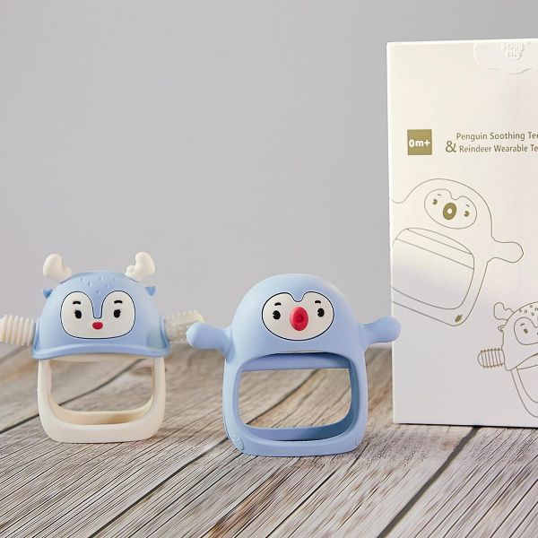 Smily Mia 2-Pack Baby Silicone Teether Set Penguin & Reindeer (Light Blue)