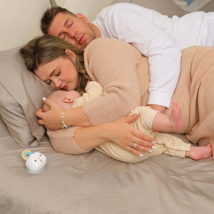 The Best Sleep Sound Machine Designed For Parents! Smily Mia Rainbow Cloud comes with 14 soothing sounds, a customizable nightlight, rechargeable battery, compact design, timer, and memory function. It is not just a baby sound machine for the nursery; it is also an effective white noise machine for parents, ensuring your entire family gets a good rest.