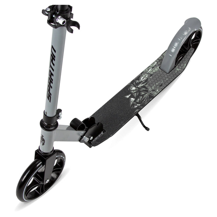 The Spartan Folding Kick Scooter with 200mm wheels delivers a fun and stylish ride around the neighborhood or park. Its lightweight design ensures easy handling and smooth movement, while the durable frame and ABEC-7 bearings provide stability and a comfortable ride. Perfect for kids and adults alike, this scooter is built for safety, performance, and convenience.
