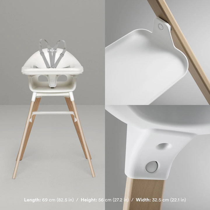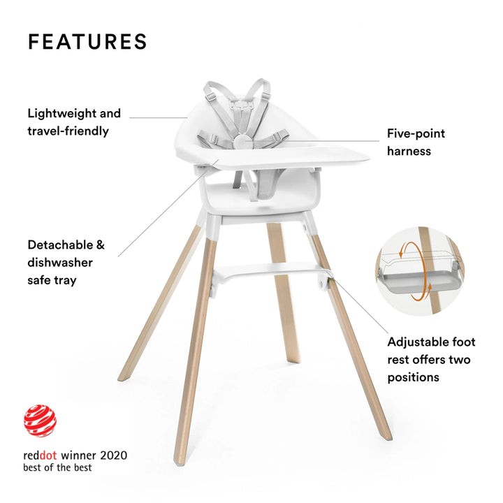 •The Stokke® Clikk™ High Chair with Tray and Harness is intended for children able to sit up unaided and up to 3 years or a maximum weight of 15 kg/ 33lbs.