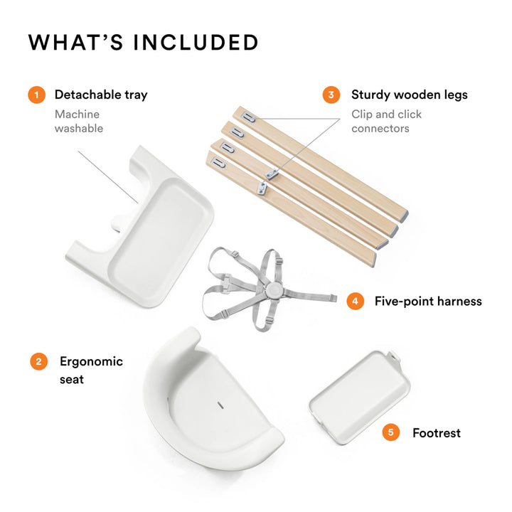 Designed for easy mealtimes from 6 months .We listened to parents about what’s really important at family mealtimes: the Stokke® Clikk™ High Chair was developed to address all your needs… all in one box! Beautifully designed with smooth lines means you’re ready for easier, cleaner & closer mealtimes in just "1-2-3 Clikk